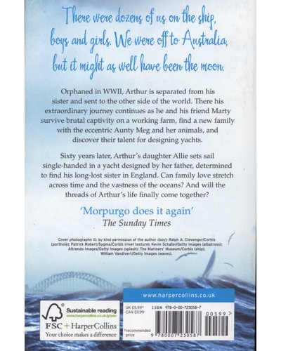 How far would you go to find yourself? The lyrical, life-affirming novel from the bestselling author of Private Peaceful and War Horse. There were dozens of us on the ship, all up on deck for the leaving of Liverpool, gulls wheeling and crying over our heads, calling good-bye... That is all I remember of England. When six-year-old orphan Arthur Hobhouse is shipped to Australia after WWII he loses his sister, his country and everything he knows. Overcoming enormous hardships with fellow orphan Marty, Arthur is finally saved by the extraordinary people he meets and by his talent for boat-design and sailing. Now he has built a special boat for his daughter Allie - a solo yacht designed to carry her to England in search of his long-lost sister. Will the threads of Arthur's life finally come together? I was there on the quayside to see Allie take her out for the first time, saw her dancing through the waves, and I knew I'd never built a finer boat.