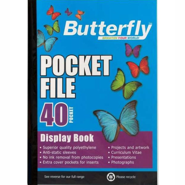 Butterfly Pocket Files are made from Superior quality Polyethylene. They have no ink removal from photocopies. They have anti-static sleeves and are proudly made in South Africa.