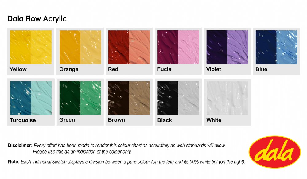 Dala Flow Acrylic is an affordable, smooth and fluid acrylic paint in a convenient squeeze bottle.