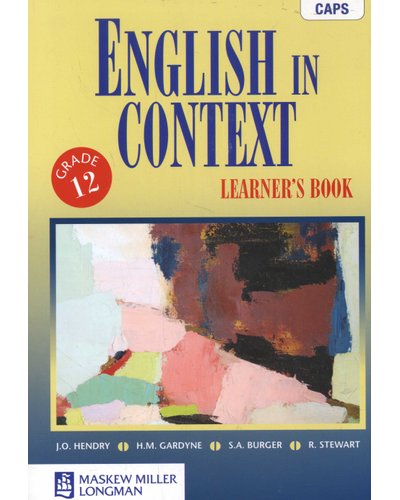 The English in context series offers learners exciting and varied opportunities to study English. The series has been revised to meet all the requirements of the CAPS curriculum for English home language in grade 12. English in context consolidates and extends language and literacy skills and knowledge. Features of this course include: a wide range of literary and non-literary texts to develop proficiency in reading and viewing; activities that promote writing practice across a variety of contexts to help learners develop written, visual and multi-media texts; opportunities to practise effective listening and speaking strategies and express ideas and opinions; activities to extend vocabulary use and understanding of language structures; activities which utilise learners' existing knowledge and promote imaginative and critical listening, thinking and reasoning; integration of language and literacy skills across other subjects.