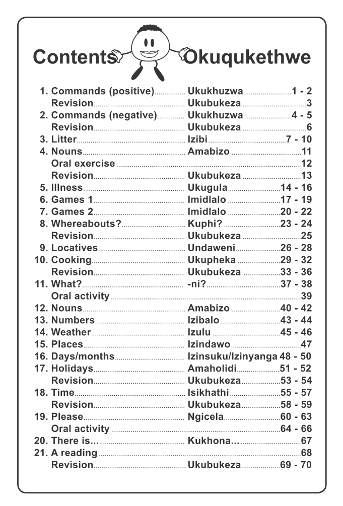 Simply Zulu is a series of workbooks to introduce isiZulu as an additional language. Learners are introduced to isiZulu words in an easy and systematic manner to help build up a firm foundation to learning the language. Workbook 3 (suitable for Grade 5 learners) introduces new vocabulary and furthers grammatical skills.
